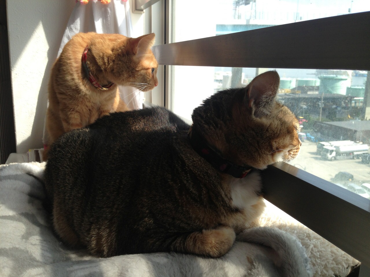 中央区にお住いのロビちゃんひこまる君、のの君、ミモザちゃんも窓際で気持ち良さそうに日向ぼっこしています