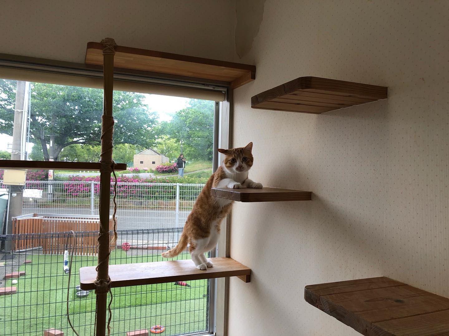 ネコちゃん用の個室にはキャットタワーとキャットウォークをご用意しています。
